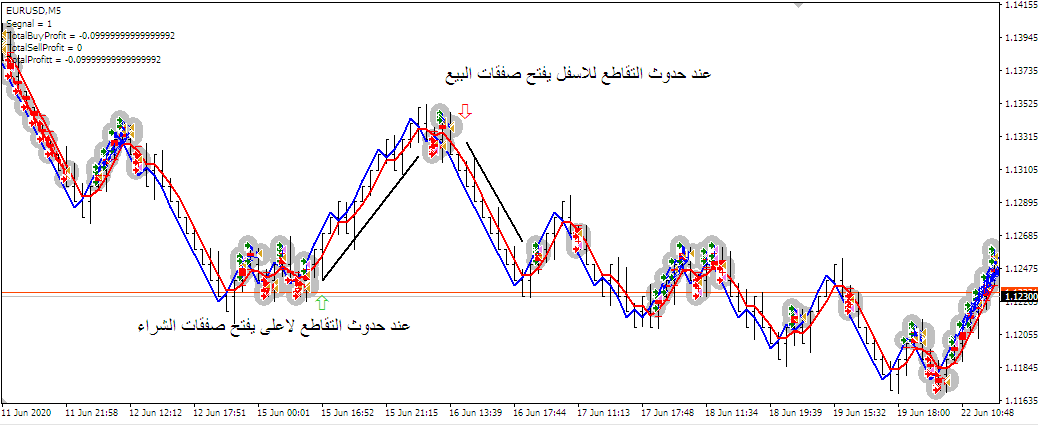 ملف مرفق 22840 السلام عليكم يا استاذ حسن ....هذا باك تيست للأكسبرت ومن المفترض عند حدوث تقاطع للأعلى يتم فتح صفقات شراء و التقاطع للأسفل يتم فتح صفقات بيع....فلا اعلم لماذا لم يتم فتح الصفقات في حالة الشراء و البيع فربما هناك شروط برمجية في الاكسبرت تمنع ذلك