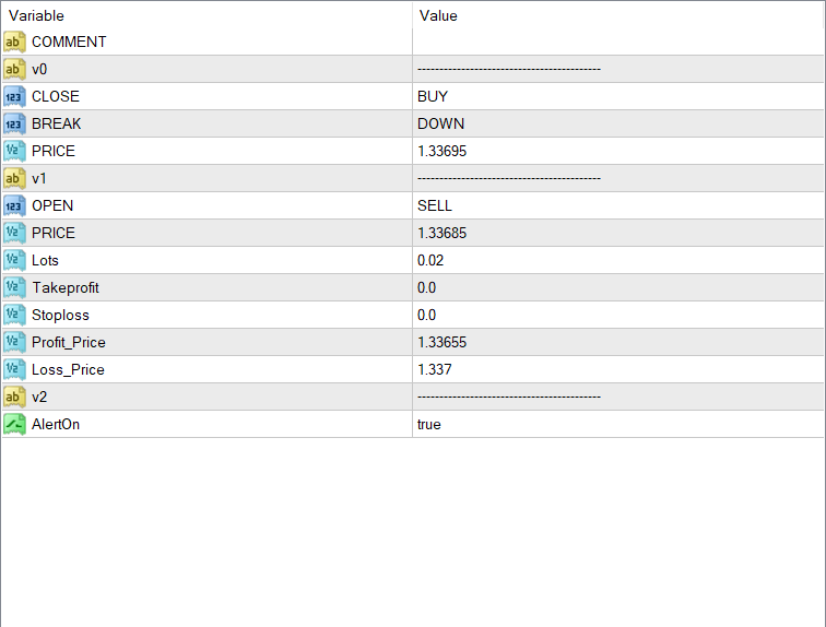 الاكسبيرت يعلق امرمثلا بيع(متغير خارجي ) مع الهدف (متغير خارجي ) و لوت (متغير خارجي ) وينتظر التفعيل لو الصففقة عكست وصعد وغلق شمعة فوق مستوى ( متغير خارجي ) يغلق الصفقة ويفتح صفقة معلقة عكسية هتكون هنا شراء من مستوي (متغير خارجي ) وهدف ( اعداد خارجي ) و لوت (متغير خارجي ) وعند تفعيل الصفقة ووصلت لهدفها ينتهى عمل الاكسيبرت اما لو السعر عكس تاني وغلق شمعة اسفل مستوي ( اعداد خارجي ) يغلق الصفقة على خساره وينتهى الاكسبيرت عمله.
