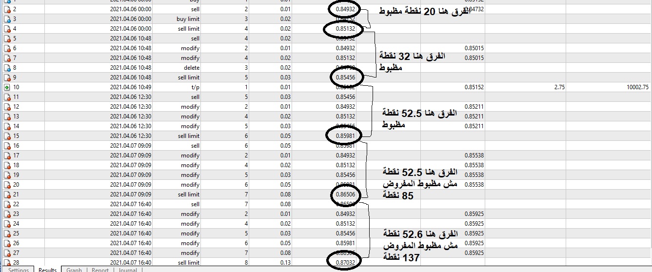 بخصوص المسافات يرجى الملاحظة ان الاكسيبرت يعمل وفق الاوامر المعلقة ولذلك ستون المسافات مظبوطة