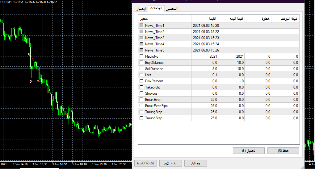 انا متاكد كما رايت الاعدادات بصور بكل الاعدادات و الفرق بين الوقت دقيقة واحدة لا يفتح و اذا وضعت فارق 3 دقائق يفتح الصفقات هل فهمتني ؟