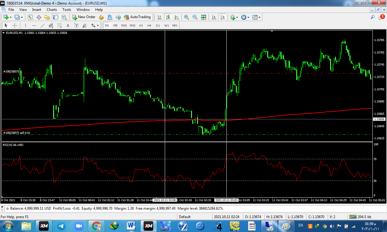 الية الدخول بيع هو عندما يكون السعر تحت الموفنج افريج وعند وصول مؤشر rsi الى القيمة المحددة من الاعدادات يدخل بيع مثلا 70